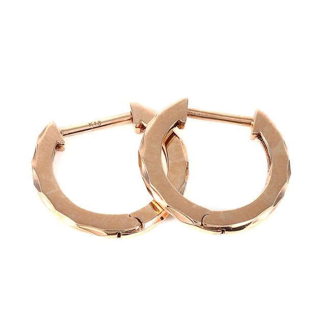 18金 フープピアス ランバスカット ピンクゴールド メンズ レディース 両耳 リング ピアス