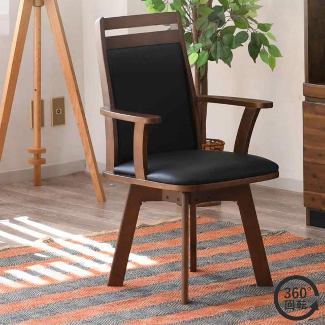 ダイニングチェア 座面高43cm 回転 肘掛け付き ゴルド ( チェア ダイニング イス 椅子 食卓椅子 肘掛け 木製 天然木 回転椅子 デスクチェア いす 食卓 リビング リビングチェア シンプル おしゃれ レザー調 )