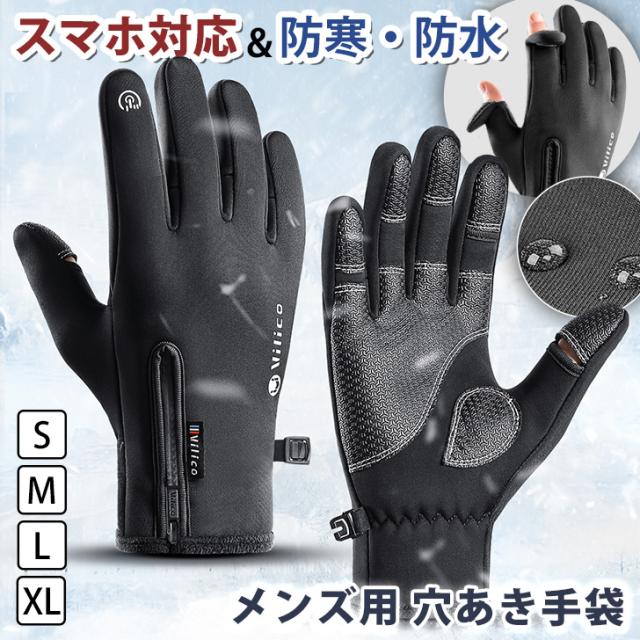 新作 選べる4サイズ 防寒&防水 スマホ対応 穴あき 手袋 メンズ レディース 指なし手袋 スマホ手袋 グローブ 指切り 指開き 指穴 スマホ 防水 滑り止め 裏起毛 フリース 防寒 あったか 暖かい 冬 雪 スノボ
