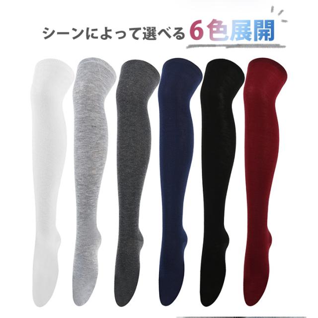 新作 選べる6カラー ベーシック 無地 ニーハイソックス レディース 女子 女の子 女性 ソックス ニーハイ オーバーニーソックス 靴下 くつ下 ロング ロング丈 膝上 ゴルフ ブラック 黒 ホワイト 白 おしゃれ