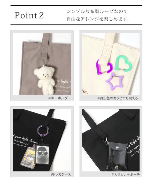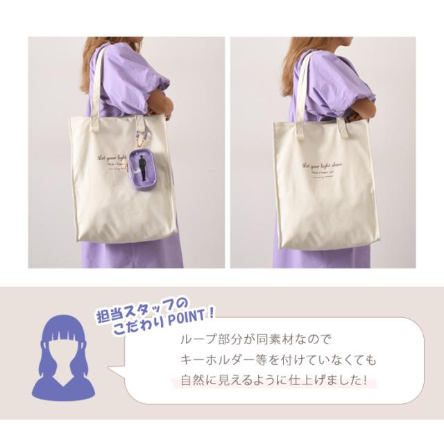 ●キーホルダーを付けられるループ付きのロゴキャンバストートバッグ