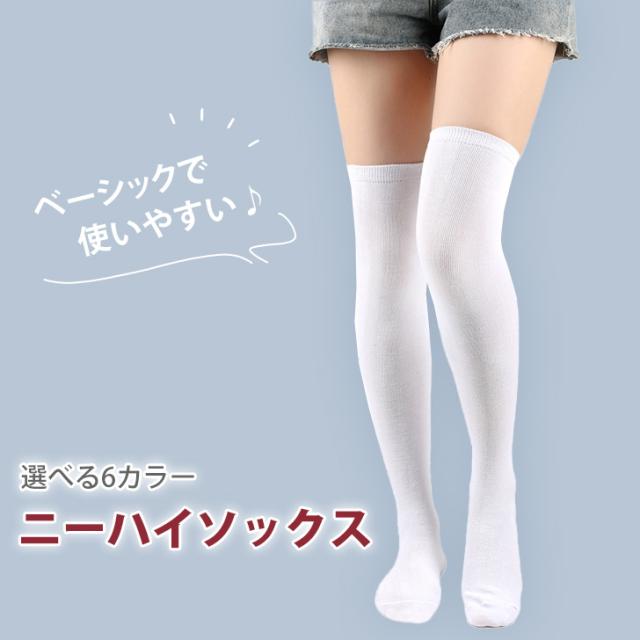 新作 選べる6カラー ベーシック 無地 ニーハイソックス レディース 女子 女の子 女性 ソックス ニーハイ オーバーニーソックス 靴下 くつ下 ロング ロング丈 膝上 ゴルフ ブラック 黒 ホワイト 白 おしゃれ