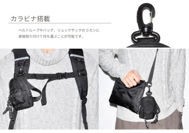 ポシェット ミニ サイズ 小型ポーチ 収納 リュック 型 おしゃれ カラビナ 小物入れ ポーチ レディース メンズ 男女兼用 シンプル アウトドア キャンプ 登山