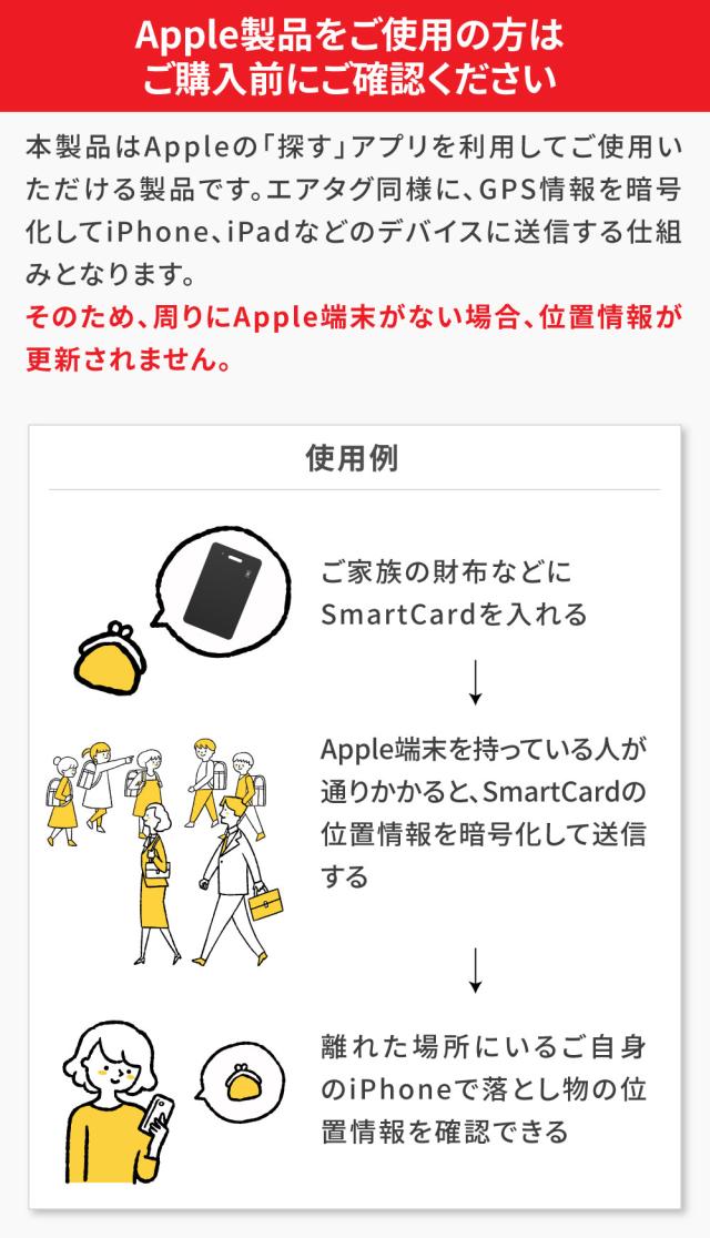 Apple Find Myに対応しているため、Apple製品にてご利用いただけます。