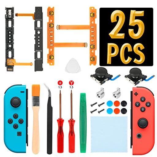 【Nintendo Switch Joy-conに適合】ジョイコン 修理 sl sr、3Dアナログジョイスティックコントロールx2、スイッチ スライドレール左右、バックルロックx2、Y字ドライバー(1.5)x1、+字ドライバー(1.5)x1、ピンセットx1 、オープニング修理ツールx1、三角パドル x1、清潔ブラシx1、ネジx4、switchアシストキャップx6