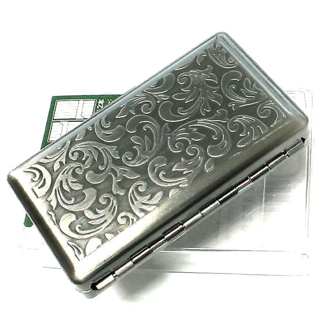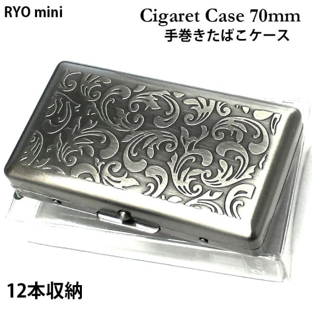 シガレットケース 70mm 手巻きたばこ 12本収納 タバコケース 頑丈 ブラックサテン アラベスク ミニ たばこケース シンプル
