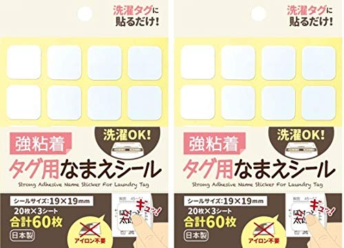 ◆商品名:ファイブスター 日本製◇強粘着タグ用なまえシール 布用名前シール ノンアイロン 貼るだけ簡単 水に強い洗濯対応(19x19mm 2パック)