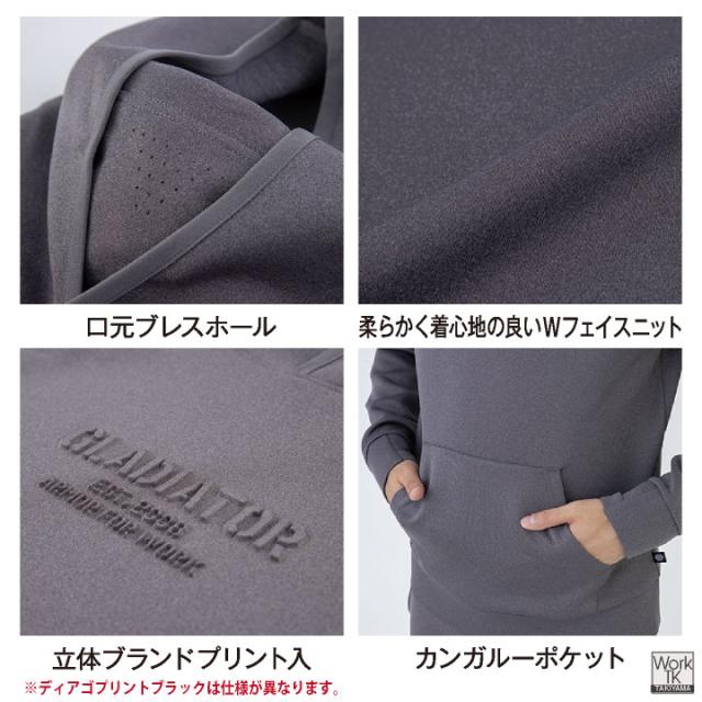CO-COS GLADIATOR G-7501 ネックウォームパーカー Wフェイスニット生地で通常のスウェットより上品な印象に。 スポーツシーンやカジュアル、ワンマイルウェアとしても活躍します。