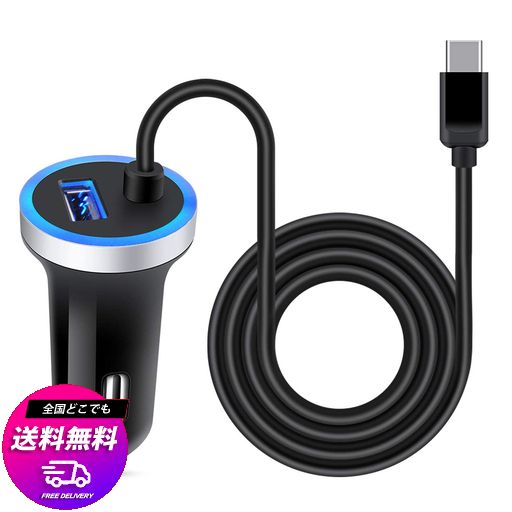 ANNIBER カーチャージャー USB TYPE-Cケーブル付き IPHONE16 シガーソケット 急速充電/2ポート/12V・24V車対応 IPHONE 17向けの車載充電器 車 USBソケット タイプC充電ケーブル シガーUSB充電器 USB車
