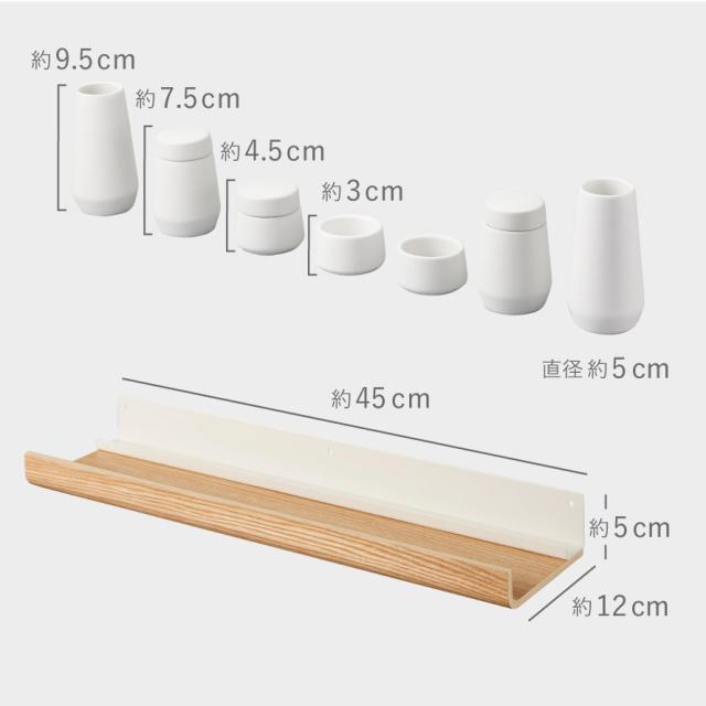 ■サイズ:神棚/幅45×奥行12×高さ5cm、榊立/幅5×奥行5×高さ9.5cm、瓶子/幅5×奥行5×高さ7.5cm(蓋含む) 水玉/幅5×奥行5×高さ4.5cm(蓋含む) 、皿/幅5×奥行5×高さ3cm