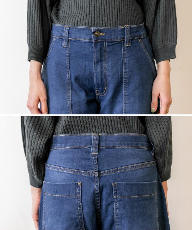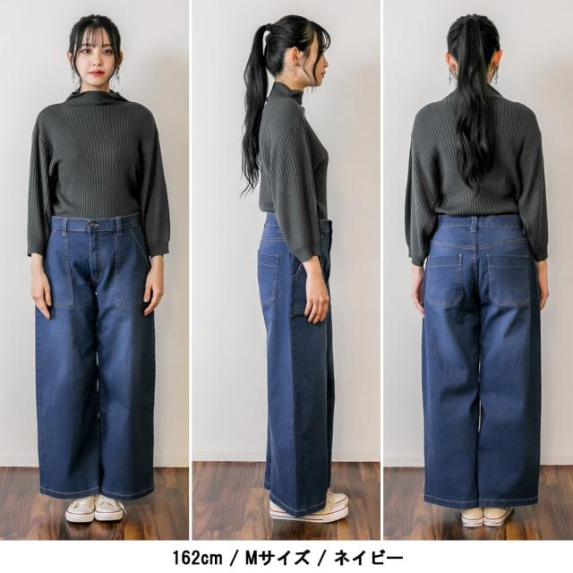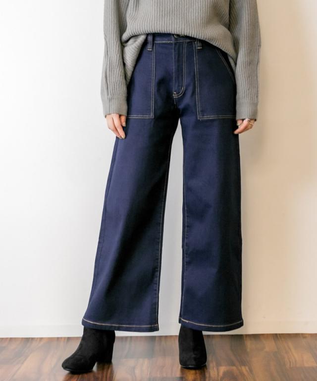 ほんのりあったか微起毛デニム デニムの裏生地自体に起毛感があるので、ひんやり感を抑えながらオシャレ感もキープ。