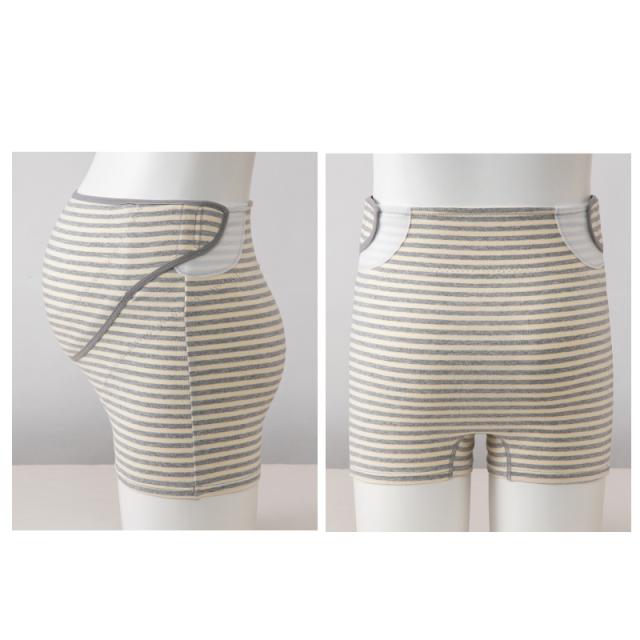 お腹部分がサッと開き、着脱もカンタン! 検診便利パンツ妊婦帯 ●元気な赤ちゃんが産まれますように● 下腹部〜腰部にかけて2重仕立てで補強。 肌当たりの良い綿混素材でお腹を下から支えてサポートします。 股部分は、羽根がしまえる2重構造で、羽根つきナプキン、おりものシートが付けられます。 両サイドのワンタッチテープを外すとお腹まわりが大きく開き、妊婦検診時にさっとお腹が出しやすい♪ ワンタッチテープでお腹のサイズ調節も簡単にできるので、妊娠初期〜妊娠後期まで長く使えます。 ※この商品は一枚履きを推奨しておりますが、 一枚履きをされた後の返品交換は、 衛生上の理由により、承ることができません。 お手数ではございますが、一度ショーツの上からご着用して頂きまして、 サイズ感をお確かめの上、ご使用くださいませ。 |