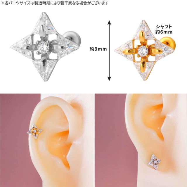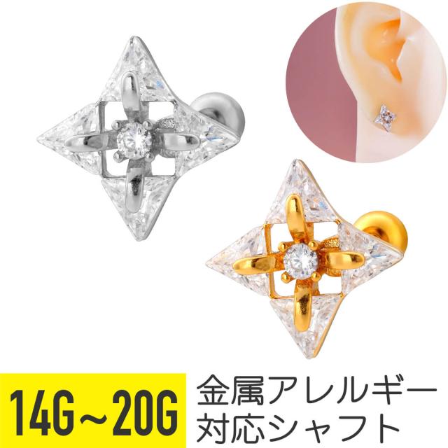 トライアングル ジュエル ひし形 ストレートバーベル 14G 16G 18G 20G サージカルステンレス ジルコニア ヘリックス 軟骨 ボディピアス