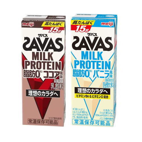 プロテイン 明治 ザバス ミルクプロテイン ココア バニラ セット商品 200ml×24本×1ケースづつ 48本 MILK PROTEIN savas 送料無料