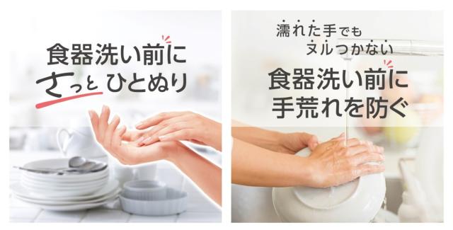 食器洗い前にサッとひとぬり。手荒れを防ぎます