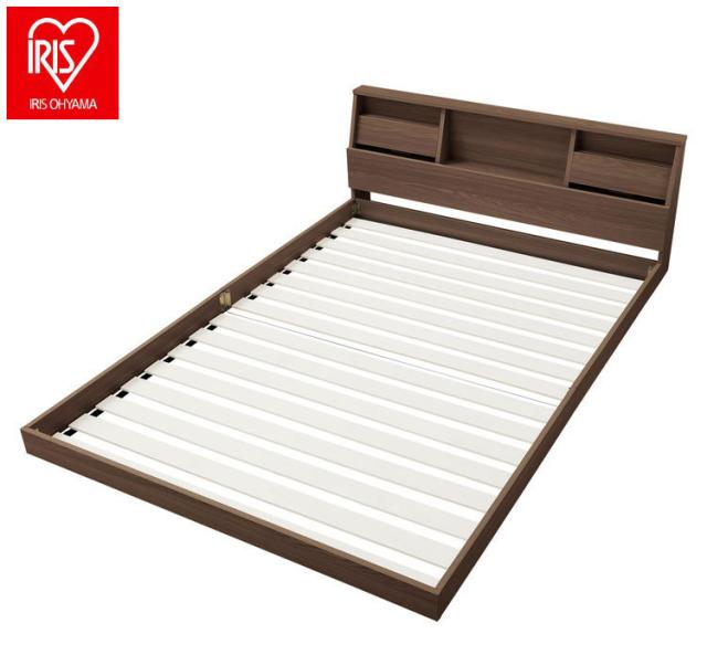 アイリスオーヤマ フロアベッド ダブル FBF-D ウォールナット 棚付き ローベッド ベッドフレーム すのこベッド IRIS OHYAMA(代引不可)【送料無料】