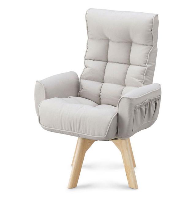 快適性とインテリア性を併せ持った回転ファブリックチェアです。座面が360度回転するので、物を取る時も便利です。座面が高いので座りやすく、立ち上がりも楽にできます。身体にフィットする座り心地で長時間座っていても快適です。使用しない時は、背面をたたむことができます。厚みのある肘掛けは、立ち座りの際に便利です。小物収納に便利なポケット付きです。お客様組み立てとなります。