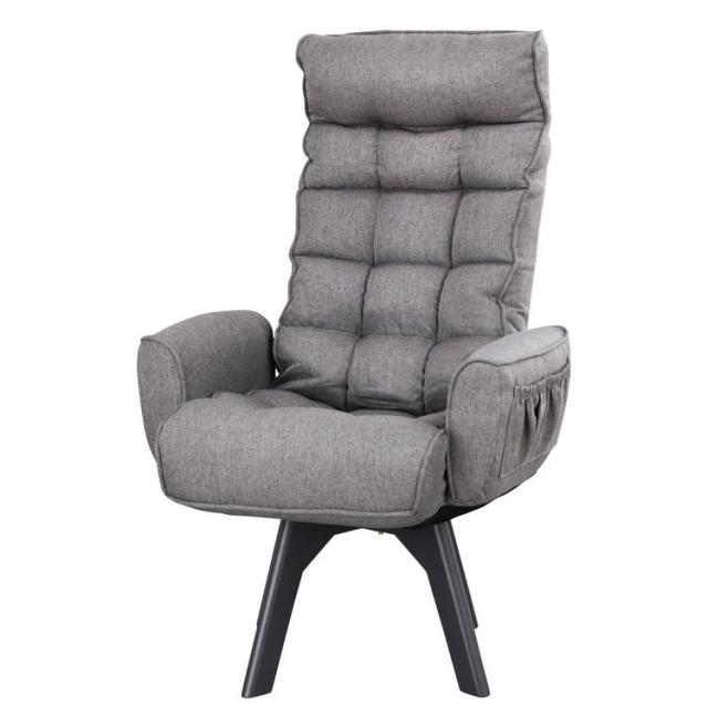 快適性とインテリア性を併せ持った回転ファブリックチェアです。背の高い男性でも首までゆったりもたれられるハイタイプです。座面が360度回転するので、立ち上がり時や物を取る時も便利です。座面が高いので座りやすく、立ち上がりも楽にできます。身体にフィットする座り心地で長時間座っていても快適です。使用しない時は、背面をたたむことができます。厚みのある肘掛けは、立ち座りの際に便利です。小物収納に便利なポケット付きです。お客様組み立てとなります。