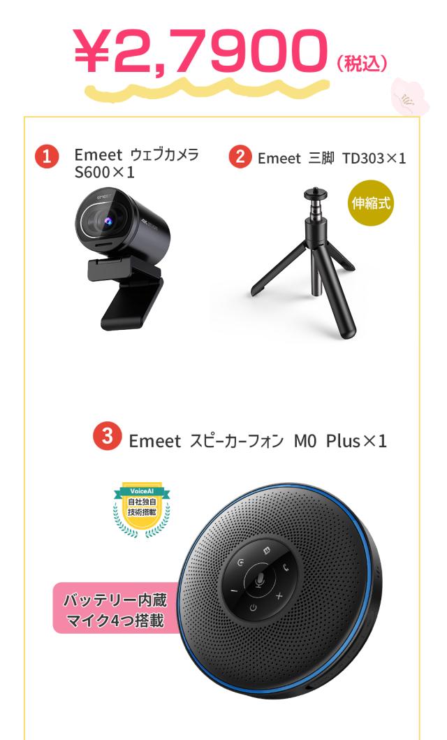 【年末年始・赤字覚悟の大特価 20%お得(15%OFF+5%ポイント) | デジタルオフィスパートナーセット 数量限定】 EMEET < ウェブカメラ S600 + スピーカーフォン M2 + Qi対応ワイヤレス充電パット + 各種アクセサリー) テレワーク Web会議 モバイルバッテリー お買い得セット