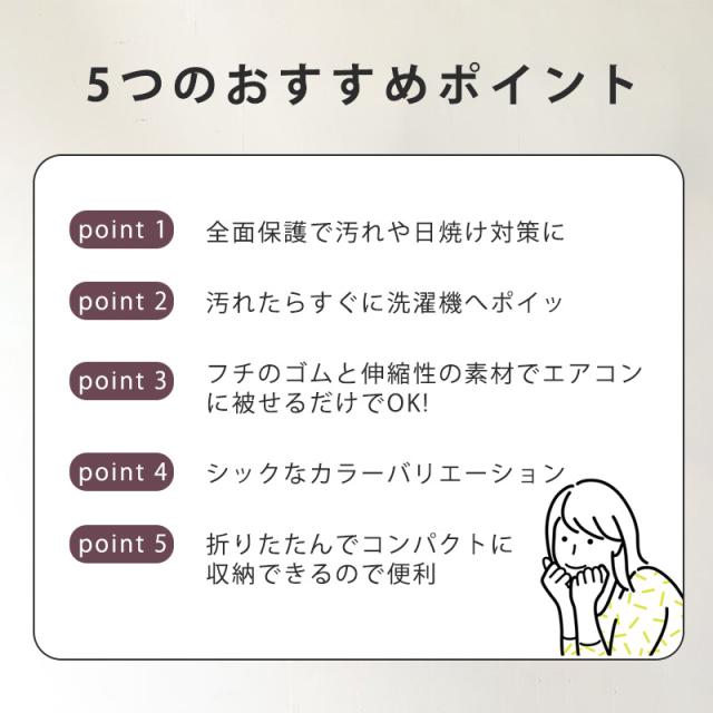 伸縮性のある素材なので様々なエアコンに幅広く対応します。フチにゴムが入っているので被せるだけでOK!