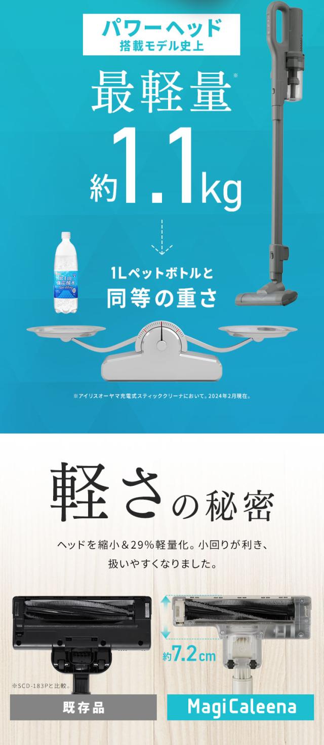 【2wayで楽々】 掃除機 コードレス サイクロン 軽量 コードレス掃除機 ハンディクリーナー 車 充電式 自走式 スティッククリーナー スタンド付き 吸引力 強力吸引 静電モップ スティック掃除機 卓上 MagiCaleena SCD-123P アイリスオーヤマ *