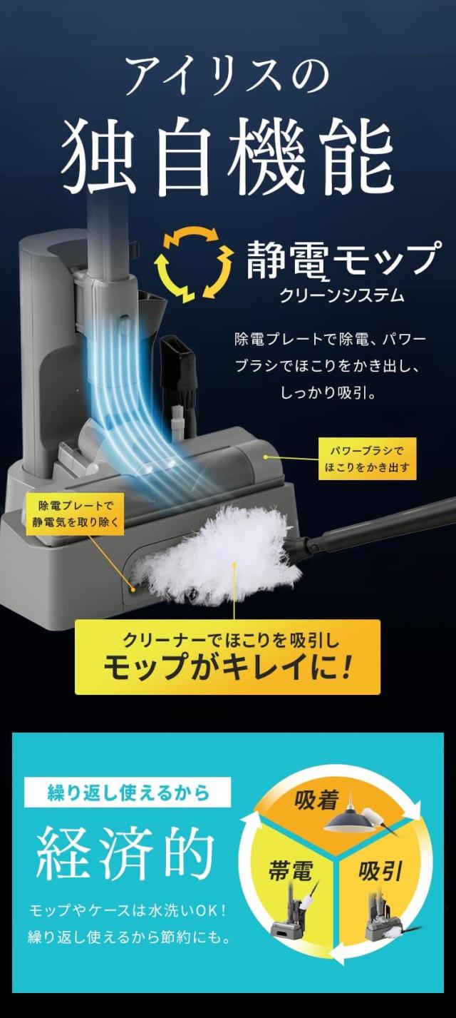 充電アダプター、充電スタンド、静電モップ、モップ帯電ケース、すき間ノズル、クリーニングブラシ、排気フィルター(予備)