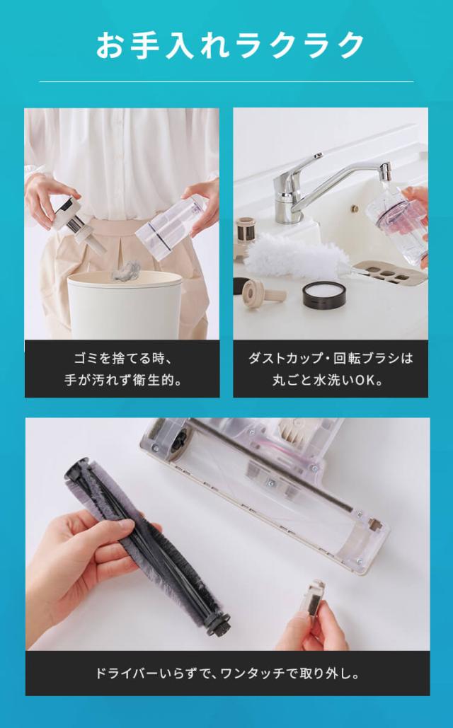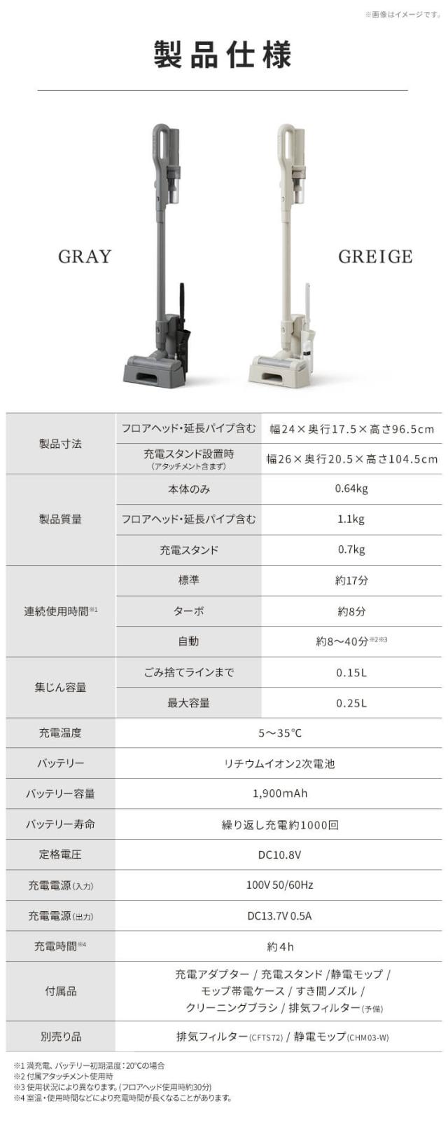 (※付属アタッチメント使用時。使用状態により異なります。[フロアヘッド使用時:約30分。]満充電、バッテリー初期温度:20℃の場合。)