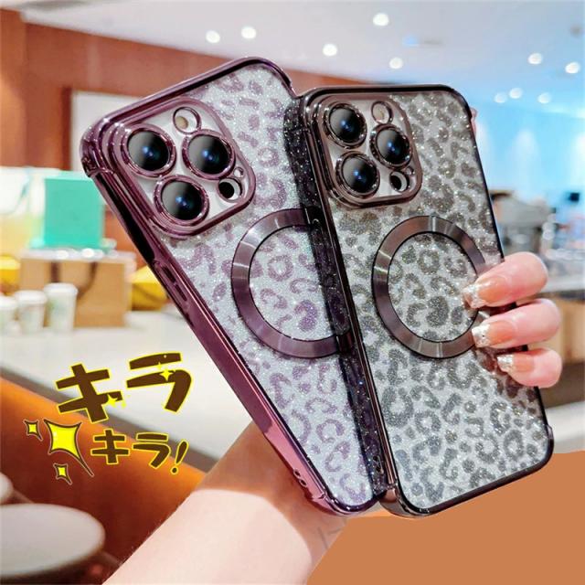 iphone17 ケース 豹柄 グリッターケース クリアケース アイホン16 アイフォン16 iphone17 16 15 14 iphone13 透明ケース キラキラ iPhone15 iPhone14 iPhone12 iPhone11 スマホケース おしゃれ MagSafeケース マグセーフ 磁石型 対応 ヒョウ柄 レオパード かっこいい