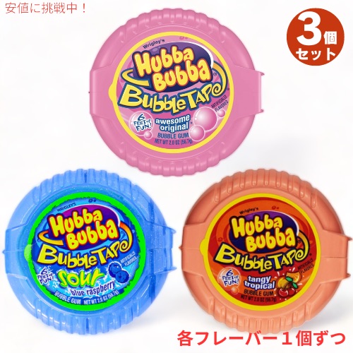 3個セット HUBBA BUBBA Tape ハバ・ババ バブルガム テープ 3種類 [オリジナル・ブルーラズベリー・タンジートロピカル味] 56.7g(2oz) 1.82m (6ft)