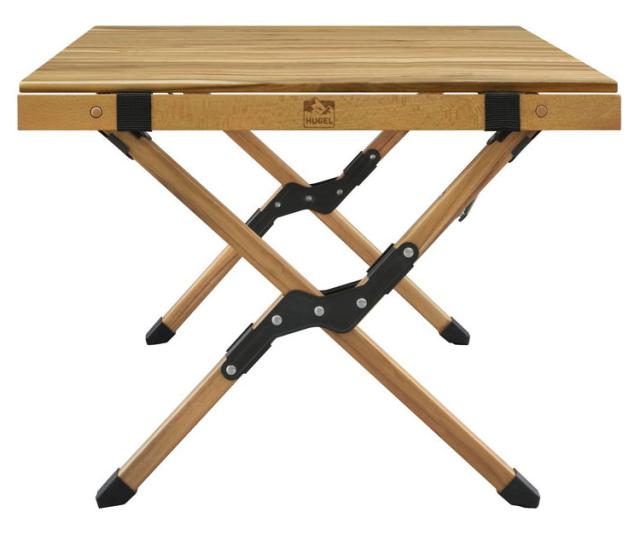 高級感のあるアカシア材の天然木を天板に使用したウッドロールテーブルです。濃淡のある色合いで天然木のあたたかな雰囲気を楽しめます。天面の高さが約44cmとロースタイルキャンプにちょうどいい高さです。脚を開いて天板をはめるだけで簡単に組み立てられます。傷防止の仕切り付き収納袋が付いています。脚部にカバーが付いているため、屋内でも使用可能です。