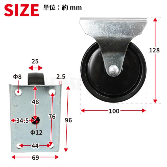 固定キャスター ナイロン車輪 2個セット 100mm 取付穴ピッチ76×44mm ノーパンクタイヤ DIY 台車 キャスター KIKAIYA