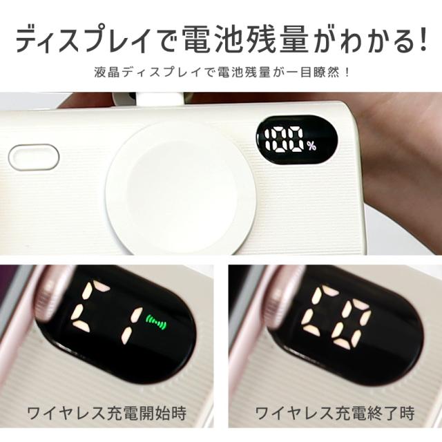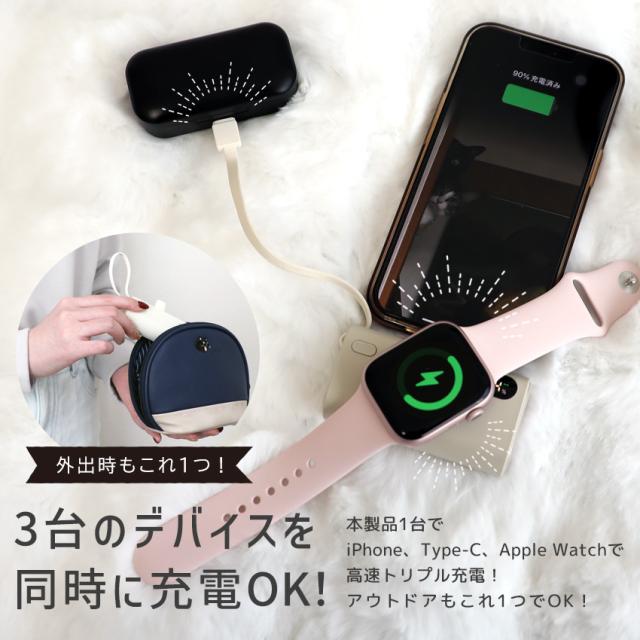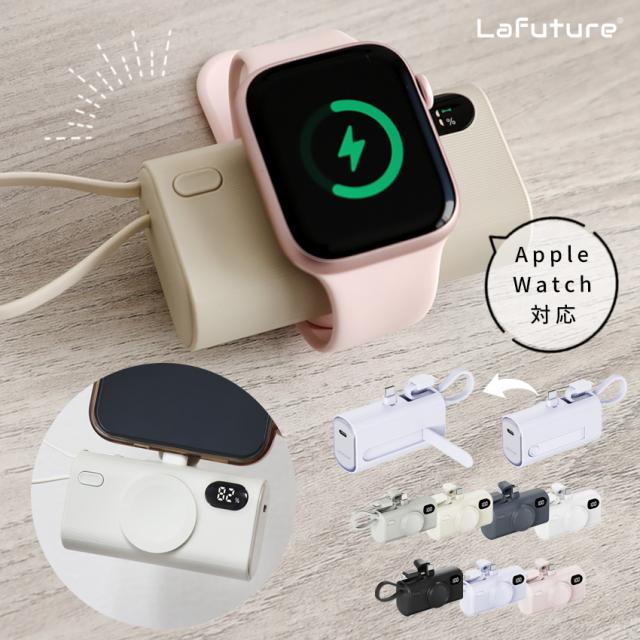 Apple Watch 充電器 最新OS対応 モバイルバッテリー 大容量 5000mAh 軽量 小型 ワイヤレス充電器 スタンド付き iPhone Lightning type-c 一体型 急速充電 3台同時充電 直挿し コードレス スマホ充電器 おしゃれ 残量表示 ipad Android PSE認証済 Lafuture