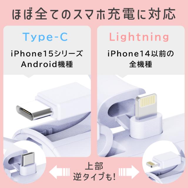 - 以前同じような形のコネクタ1個の物を使っていました。iPhone 15に機種変更したためタイプBを購入。長時間出かけたり旅行の時携帯やアップルウォッチの充電ができるため小さくて邪魔にならずとても重宝し...