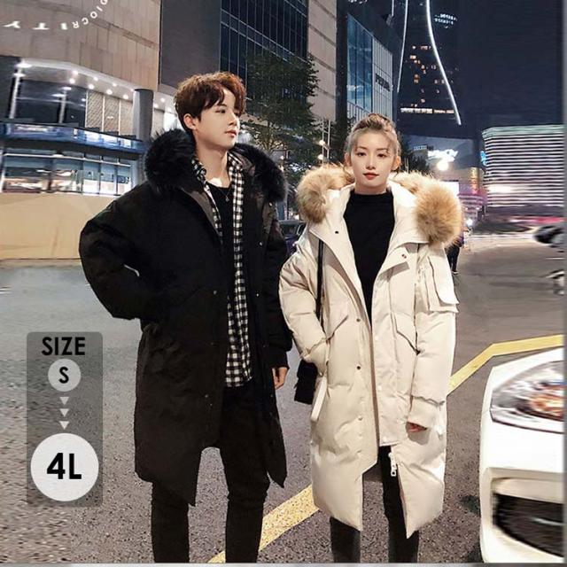 ダウンジャケット ペア ファー襟付きダウンコート レディース メンズ カップル ベージュ 黒 フェイクファー フード コクーン ゆったり ミリタリー系 大きいサイズあり 厚手 通勤 通学ジップアップ アウター 冬服 モッズコート 防寒着 おしゃれ あったか