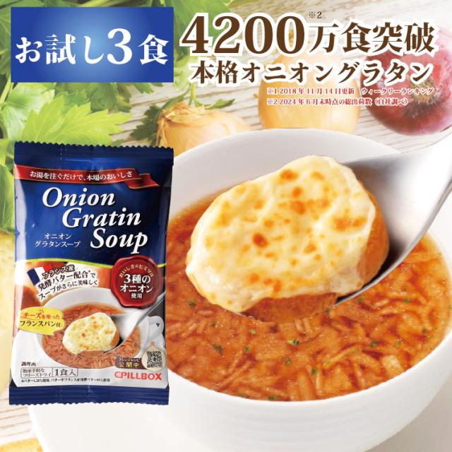 4200万食突破オニオングラタンスープ3食入 PILLBOX オニグラ ラヴィット フリーズドライ 沸騰ワード10 オニオンスープ 即席 玉ねぎスープ インスタント食品 ピルボックス 常温保存 ギフト スープの素