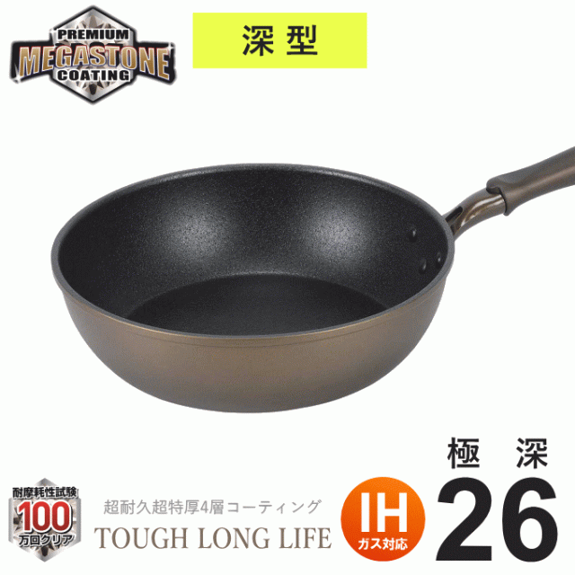 IH対応 ロングライフメガストーンフライパン 極深26cm