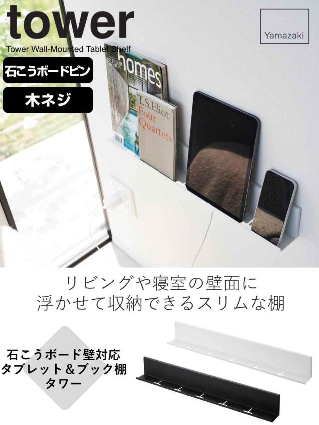 山崎実業 石こうボード壁対応タブレット&ブック棚 タワー ( タワーシリーズ タブレット棚 ブック棚 棚 石こうボードピン 壁面 壁面収納 ディスプレイ ディスプレイ棚 シェルフ スリム棚 タブレット )
