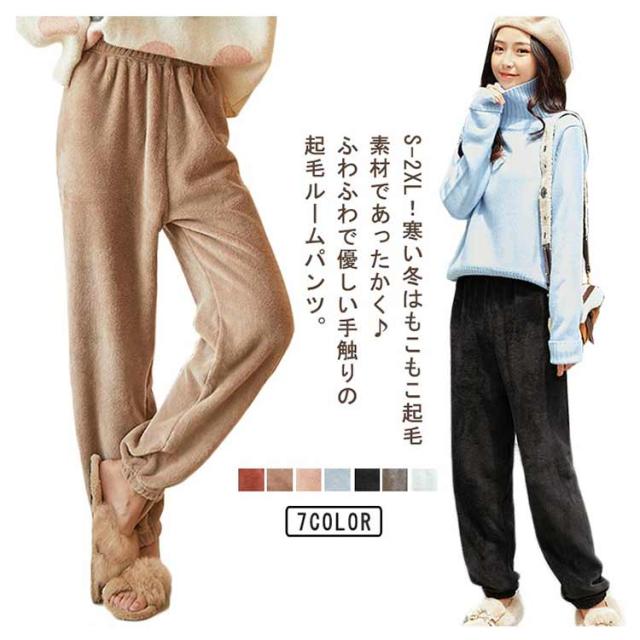 | S-2XL!寒い冬はもこもこ起毛素材であったかく♪ふわふわで優しい手触りの起毛ルームパンツ。 冬でもぽかぽかあたたかく快適に過ごせます。 足口にもゴムが入っているので、就寝時などにずり上がりにくく、あたたかさをキープできます。 選べるカラーも嬉しい♪洗濯機で洗えるのでいつも清潔! | |