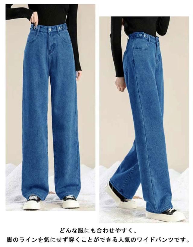 デニム ワイドパンツ 裏起毛 デニムパンツ ボトムス 秋冬 防寒 ハイウエスト あったか デニムパンツ ジーンズ ゆったり 裏起毛なし ジーパン 暖パン 大きいサイズ カジュアル 美脚 ロングパンツ 保温性 ストレートパンツ 春 脚長効果 夏 秋 冬