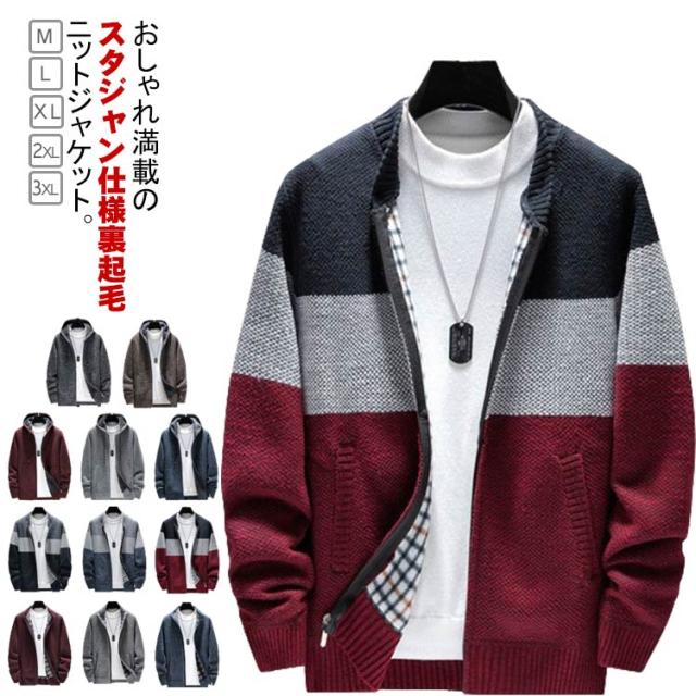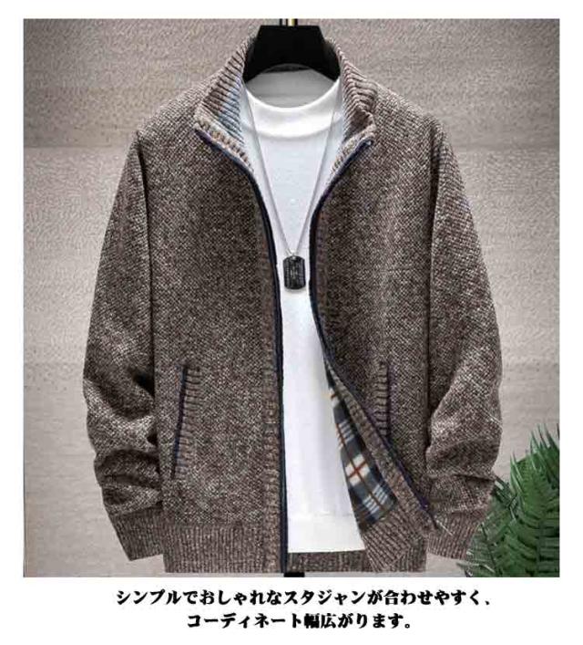 カーディガン 裏起毛 冬 秋 ボアジャケット ビジネス カジュアル スタジャン 厚手 ジップアップ メンズ 春 裏ボア ジャケット ニット おしゃれ カーディガン ニット セーター 大きいサイズ ニットカーディガン もこもこ アウター 防寒 ブルゾン カジュアル