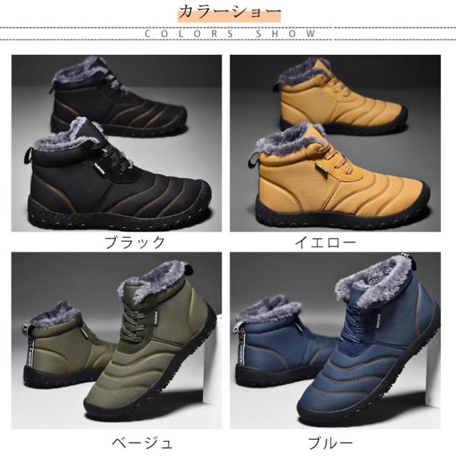 メンズ 防寒靴 スノーブーツ スノーブーツ ショートブーツ 撥水 裏起毛 ファー付き 雪靴 スノーシューズ 保温 冬用 防滑 暖かい オシャレ 軽量 アウトドア 滑り止め 柔らかい