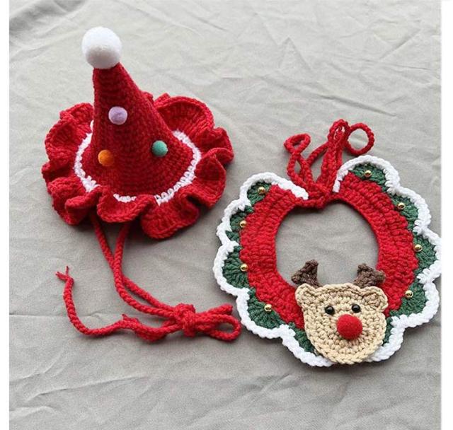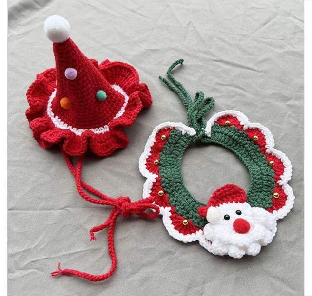 サンタ クリスマス ペット用品 猫 よだれかけ 帽子 スタイ チョーカー 小型犬 猫服 首飾り スカーフ ペット用品 犬 2点セット 犬服 クリスマス クリスマス コスチューム ドッグウェア キャットウェア おしゃれ かわいい おめかし アクセサリー