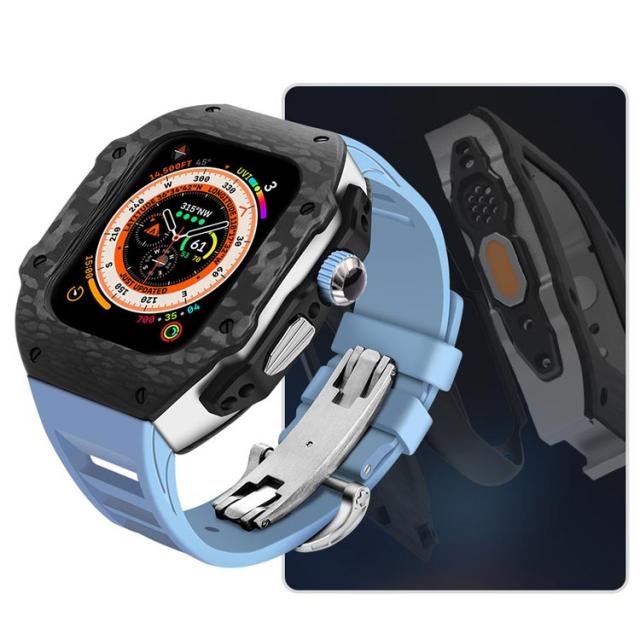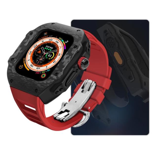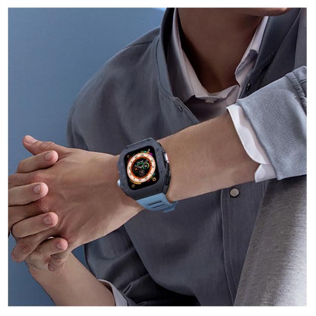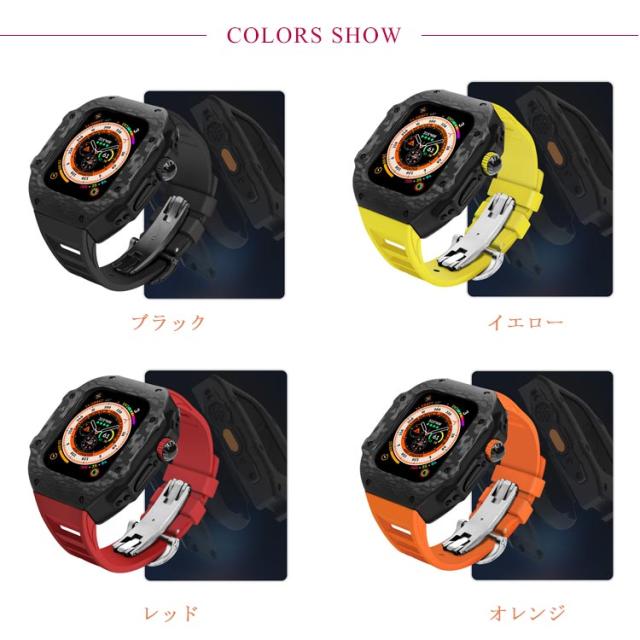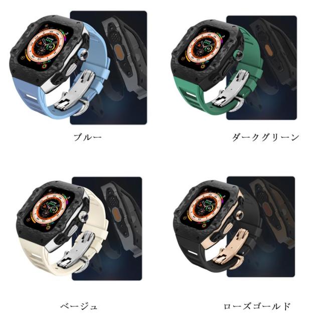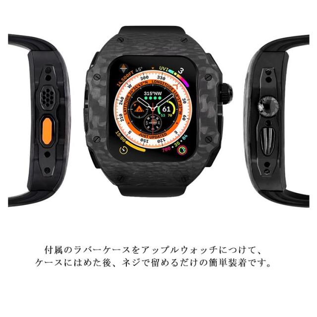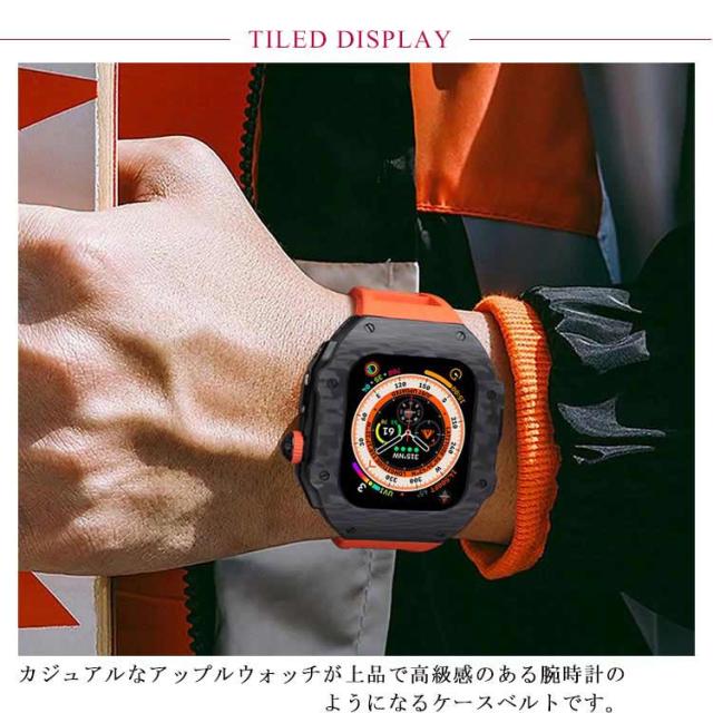 ケース バンド ラバー 高級 ケースバンド カバー Ultra 一体型 カーボンファイバー ステンレス ベルト メンズ apple 高級 watch 49mm 高級ベルト アップルウォッチ 交換ベルト ウルトラ 装着簡単 おしゃれ 腕時計 ケース
