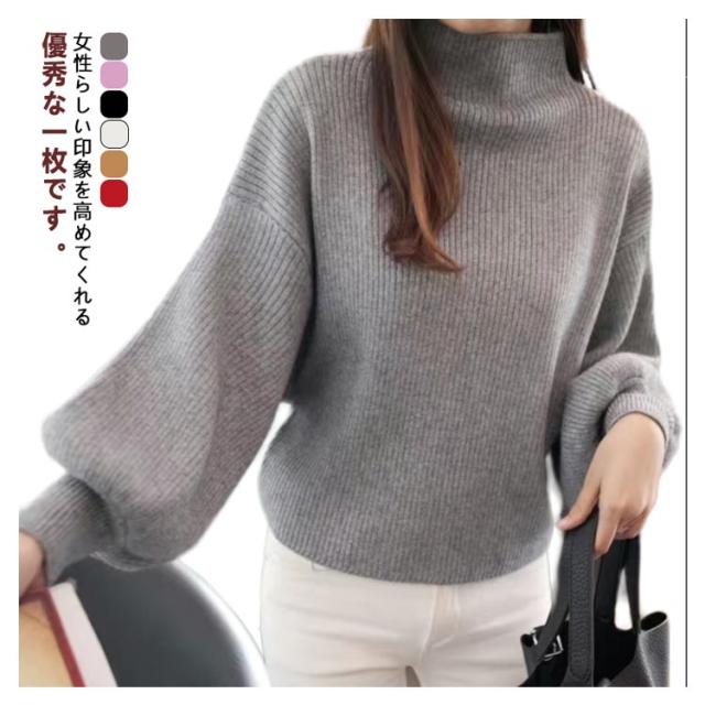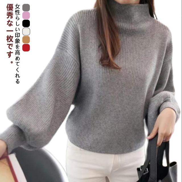 バルーン袖 ぽわん袖 40代 ニット セーター ニットセーター トップス 大きいサイズ レディース ハイネック バルーンスリーブ M リブ 韓国ファッション スリム ニット 30代 きれいめ 50代 バルーン袖 L XL 2XL 3XL
