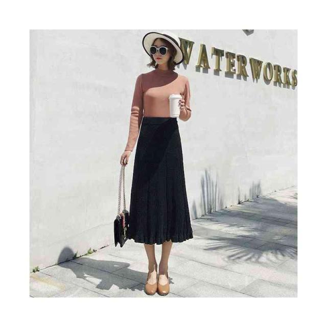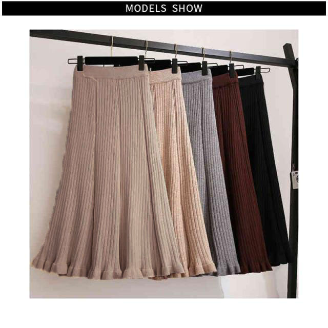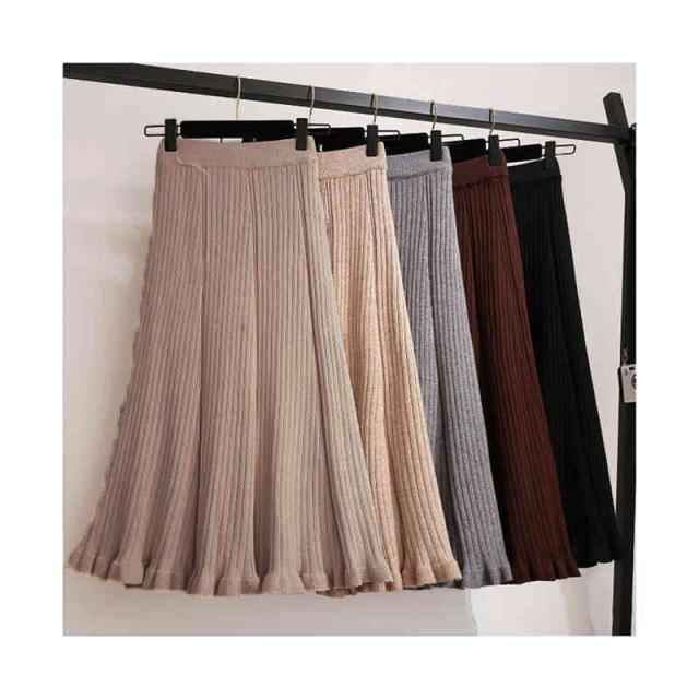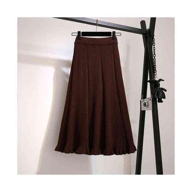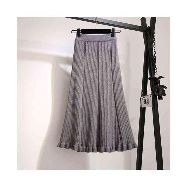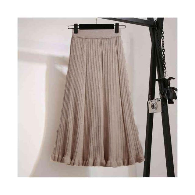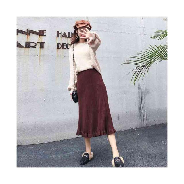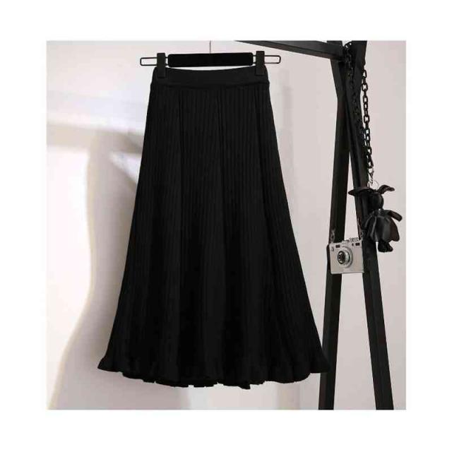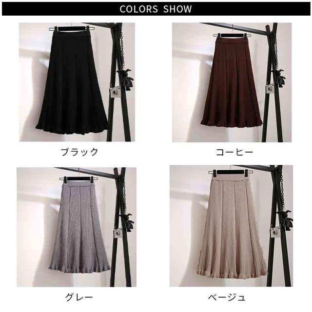ニット スカート フレアスカート ケーブルニット ウエストゴム ロングスカート レディース リブニット 無地 ハイウエスト ロング丈 ニットスカート きれいめ シンプル カジュアル 大きいサイズ 体型カバー 着痩せ 通勤 秋 冬 送料無料