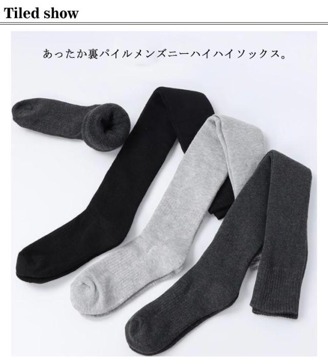 | 3足セット メンズ オーバーニーソックス あったか裏パイルメンズニーハイハイソックス。 コットン素材×パイル地を使っているので、ムレにくくあたたか。 裏地は全てパイル生地でまるで毛布のような肌触りです。 二重の滑り止め付きで、しっかりずり落ち防止。 ほどよい厚みだから、家でも外でも足元ぬくぬく! 太ももから足元までしっかりとカバーできるため、防寒にもおすすめ。 フォーマル、カジュアル、どちらのスタイリングにもマッチしやすい仕上がりです。 | |