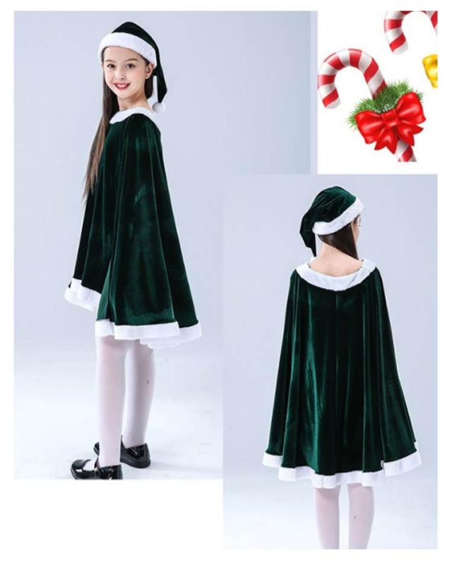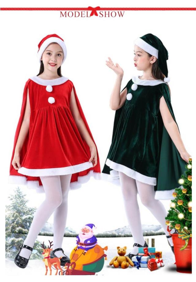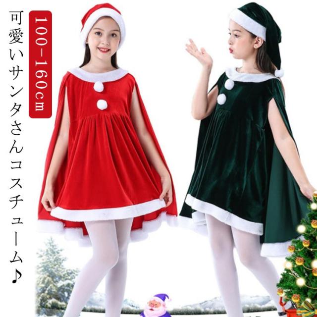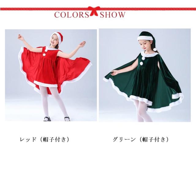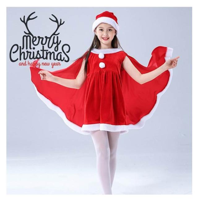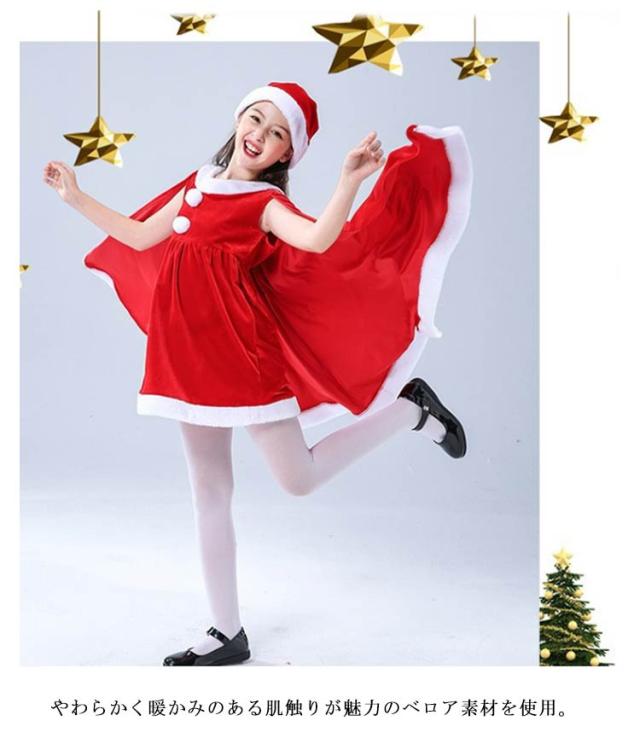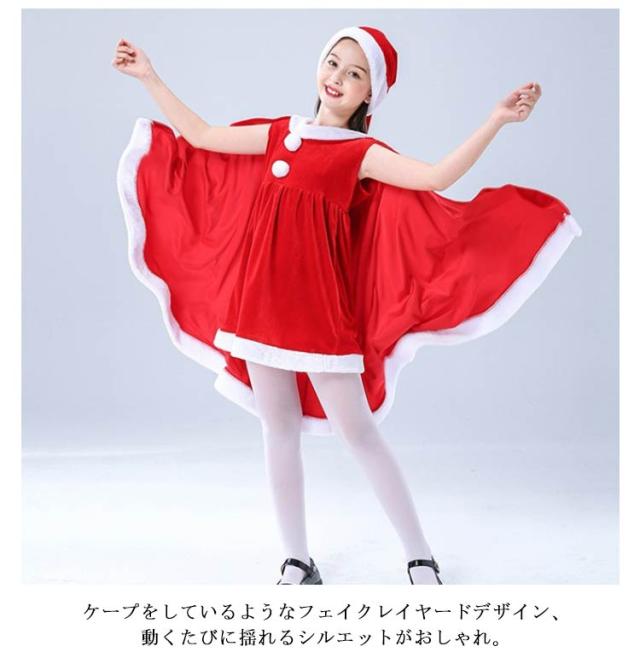 子供服 サンタクロース コスチューム ケープ 女の子 サンタコス 衣装 ポンチョ サンタコス ワンピース 重ね着風 送料無料 子供服 帽子付き パーティー クリスマス キッズ服 ジュニア 演出服