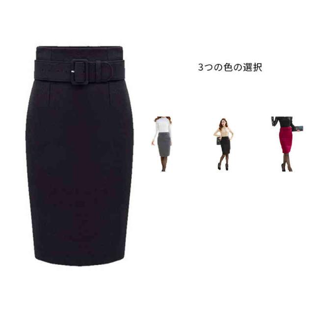ペンシルスカート レディース 春秋冬 タイトスカート ベルト付き おしゃれペンシルスカート スカート ベルト付きスカート ペンシル ミディアムスカート タイト ボトムス 通勤 オフィス 大きサイズ フェミニン 送料無料 着痩せ