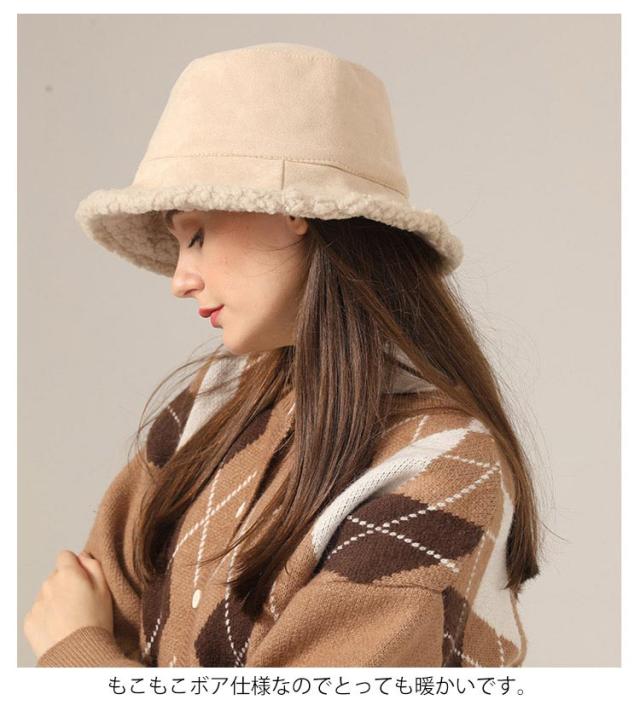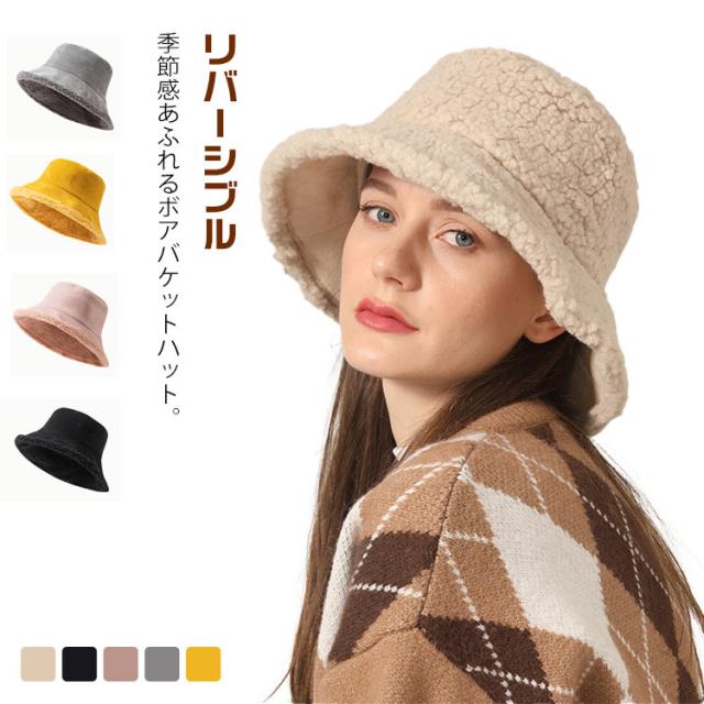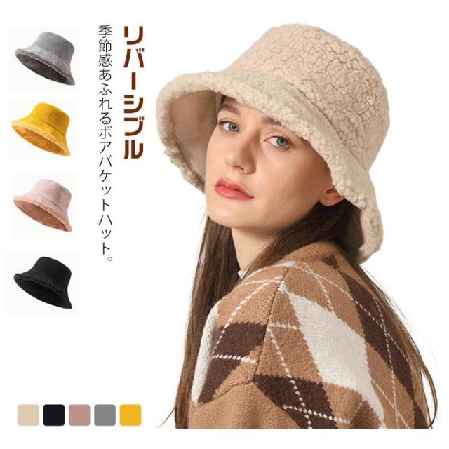 レディース リバーシブル バケットハット アウトドア ボア帽子 ボアハット 帽子 無地 ボア 大きいサイズ あったか ボア 秋冬 防寒 プレゼント