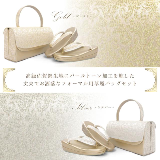 草履バッグセット 留袖 草履 バッグ セット バッグセット 草履バッグ パールトーン加工 佐賀錦 撥水 エナメル 礼装 黒留袖 S M L LL 3L サイズ フリーサイズ 小さいサイズ 大きいサイズ ゴールド シルバー 金 銀 結婚式 披露宴 入学式 卒業式 お宮参り フォーマル